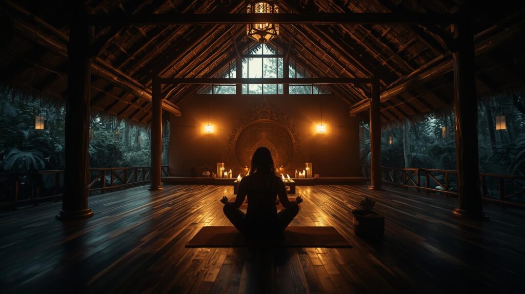 • Mantra & Satsang Area: A dedicated zone for chanting, Gita study, and spiritual gatherings.
